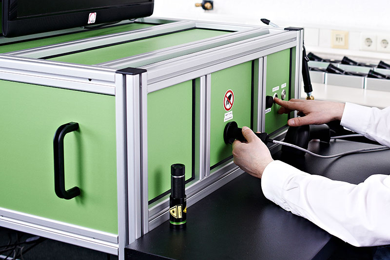 Alle Infrarotlaser werden in einer 100% Prüfung geprüft und sind Laserklasse 1 zertifiziert, d.h. die zugängliche Laserstrahlung ist absolut ungefährlich – für Mensch und Tier.