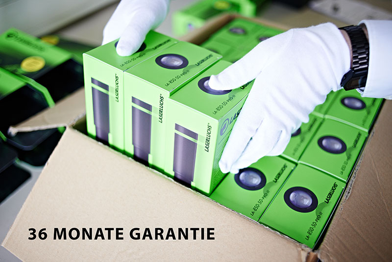 Alle LASERLUCHS® Infrarot Aufheller Produkte sind widerstandsfähig, langlebig und leistungsstark. Darauf gewähren wir Ihnen 36 Monate Herstellergarantie!